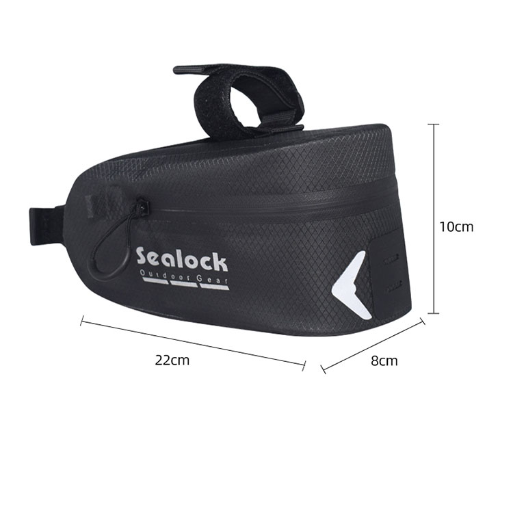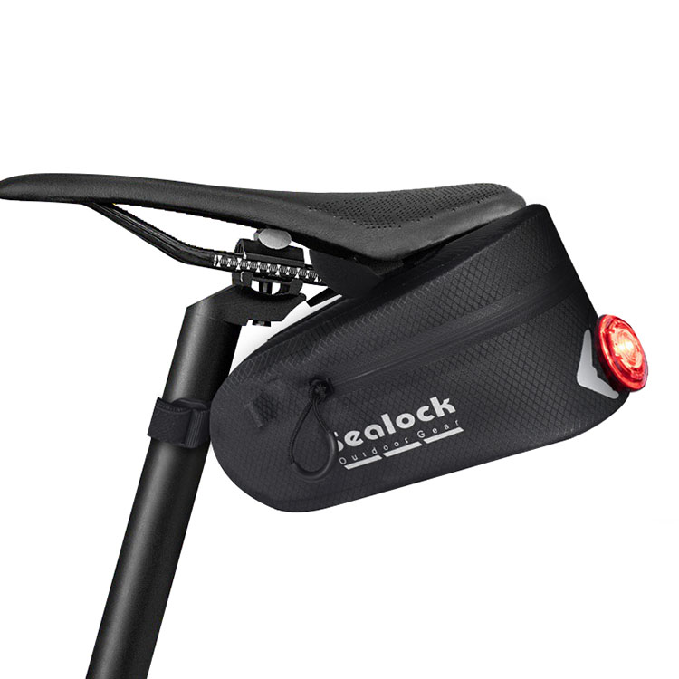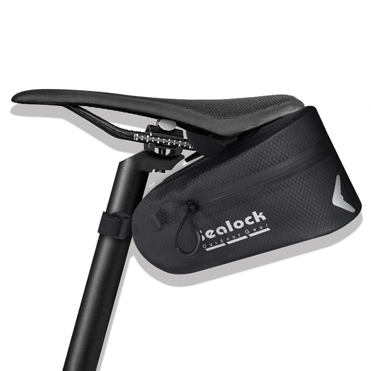 Sedlová sáček na kole je vyroben z nepromokavé tkaniny a má páskový zip, který zabraňuje vstupu vody přes zip. Ale dlouho se nasákněte, protože zipy nejsou úplně vodotěsné a voda může do švů proniknout.